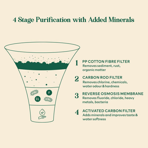 Our naturalĀ alkaline water systemĀ uses a reverse osmosis to remove up to 99% of contaminants while adding minerals in the final filtration stage: