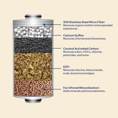 Only the best shower filter system adds this many health benefits to your shower with the help of far infrared mineralisation. Our water filters increase: